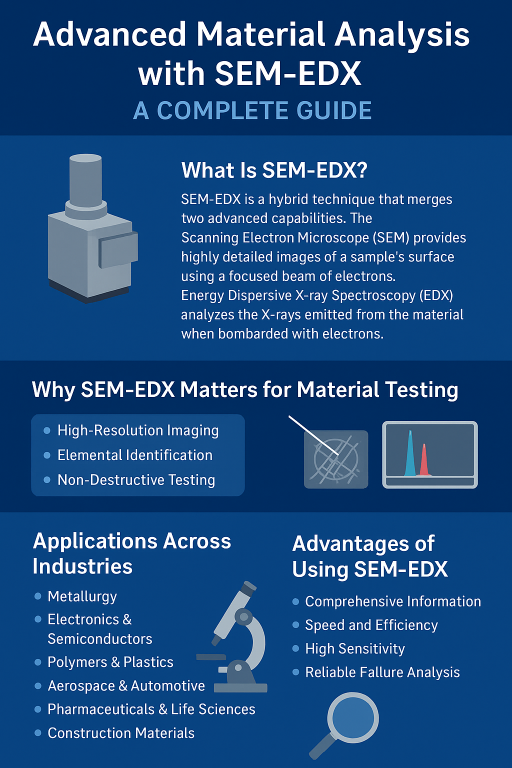In today’s fast-evolving industrial and research environment, understanding the microscopic structure and elemental composition of materials is essential for improving quality, performance, and reliability. One of the most trusted analytical techniques used across laboratories and industries is SEM-EDX (Scanning Electron Microscopy with Energy Dispersive X-ray Spectroscopy). This powerful combination allows experts to study materials at extremely high magnifications while simultaneously identifying the elements present in them. Whether in manufacturing, metallurgy, electronics, or academic research, SEM-EDX has become an indispensable tool for precise material characterization.